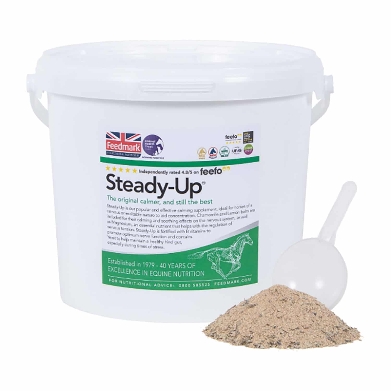 Natural calmer providing magnesium, B vitamins and calming herbs to maintain a healthy nervous system of fizzy and excitable horses and ponies without reducing performance. Includes herbs such as chamomile and lemon balm to soothe the nervous system and yeast to help maintain a healthy hind gut during stressful times. Contains no synthetic sedatives so can be fed long term and is suitable for young horses in training. 2kg fed at maintenance should last 35 days.